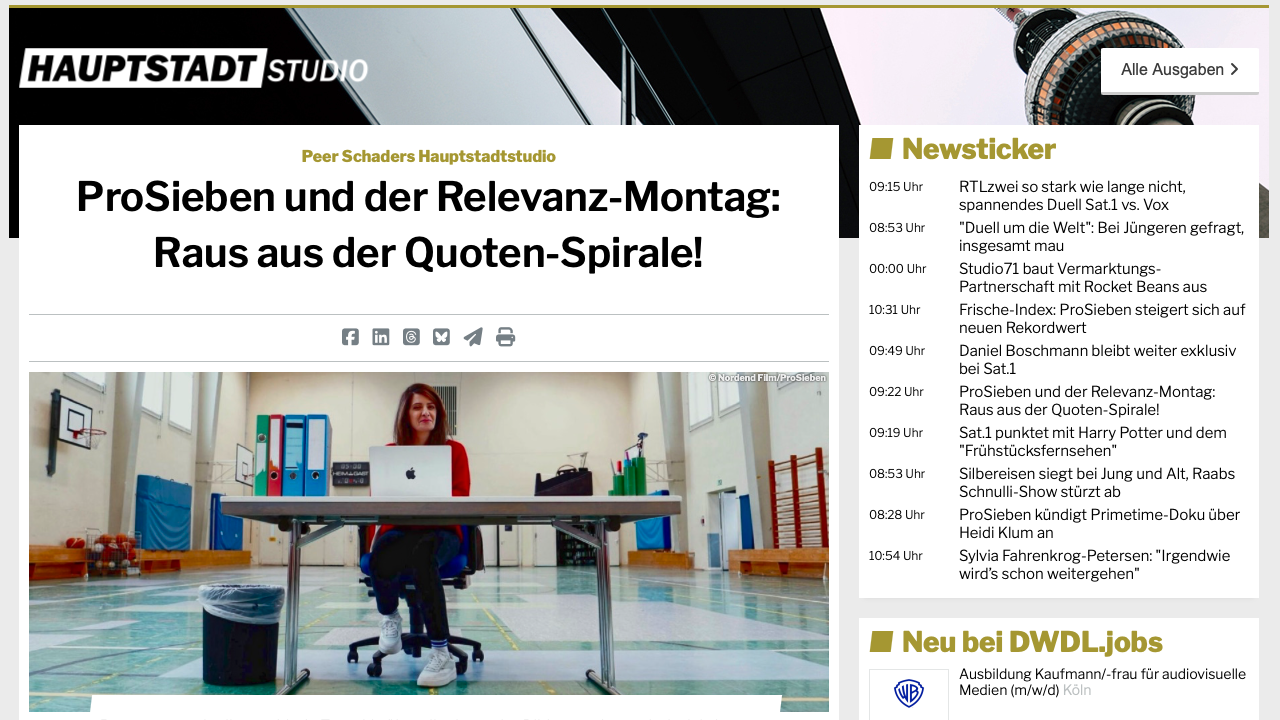 „Raus aus der Quoten-Spriale!“, so überschreibt der DWDL.de Autor Peer Schader seine aktuelle Kolumne.